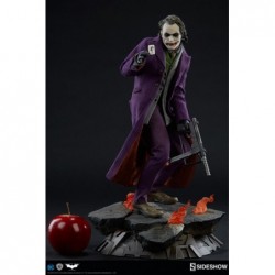 Sculpture en résine (polystone) et tissu (vêtements), peinte à la main, à l'image de l'acteur Heath Ledger dans le film "Batman: The Dark Knight" réalisé par Christopher Nolan.